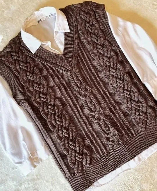 Жилет связан для женщины, но идея, в целом, подойдет и для мужчины или ребенка.