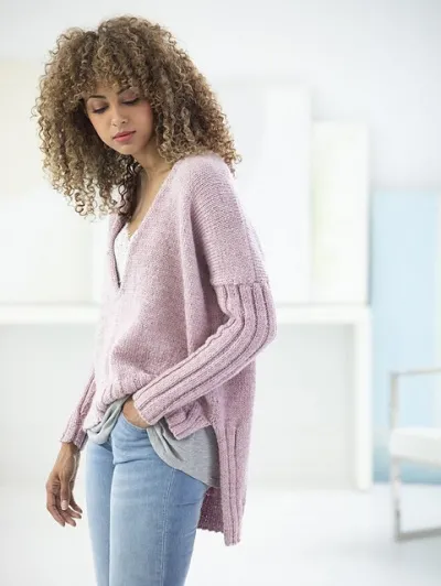 Как вязать стильный женский пуловер с удлинённой спинкой, описание: