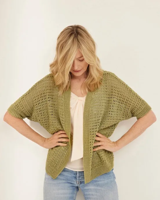 Ажурный летний жакет спицами сетчатым узором