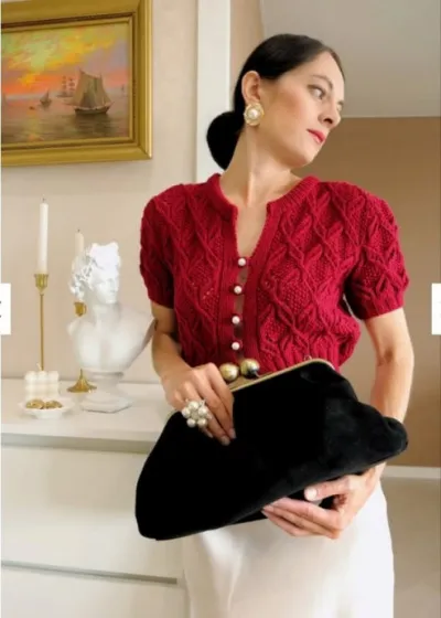 Если вы хотите добавить в свой гардероб вещь, которая будет сочетать комфорт, стиль и эффектность — обратите внимание на ярко-красный жакет, связанный спицами. Он выглядит уверенно, энергично и мгновенно поднимает настроение.