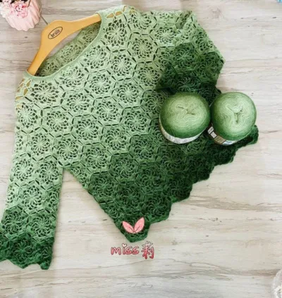 Если ты ищешь способ выделиться и добавить в образ лёгкость и характер — присмотрись к ажурной кофте, связанной из мотивов. Особенно эффектно она смотрится в нескольких оттенках зелёного: от мяты до глубокой хвои.