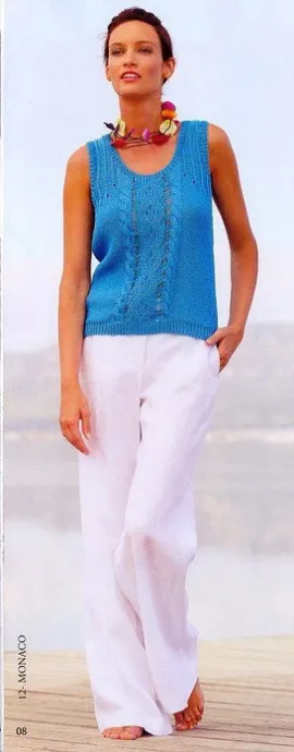 Связанная спицами из натуральной пряжи, она подчёркивает женственность и создаёт ощущение комфорта на теле. А голубой цвет дарит ощущение свежести, лёгкости и простора — как утреннее небо в июне.