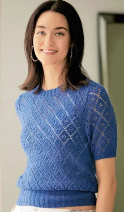 Вам потребуется: пряжа (79% шерсти,21% полиамида; 185 м/25 г) - 125(150) 175 г синей; спицы № 2,5 и 3,5; круговые спицы № 2,5.