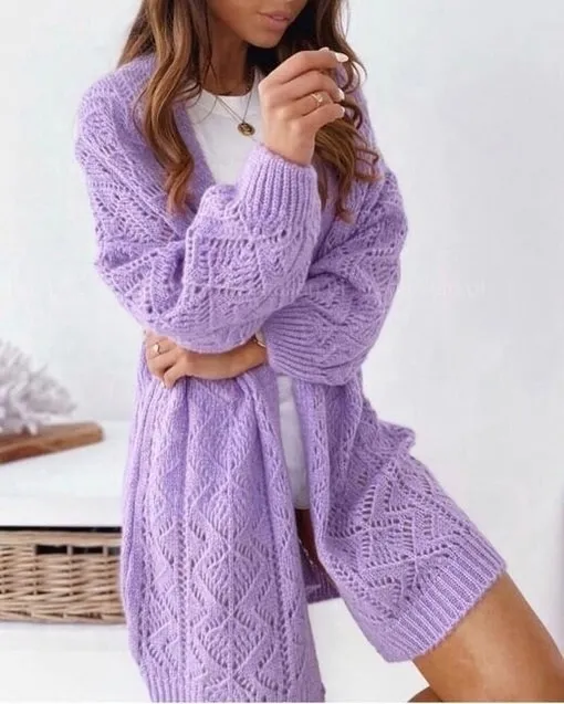 Петли планки провязывать без изменений.Через 52,5 см от начала вязания разделить полотно и вязать отдельно спинку и полочки. На ажурный узор спинки приходится 81 п.+2 кр.п. На полочки – по 40 п. ажурного узора + 6 п. планка + 2 кр.п.На общей высоте 76 см закрыть петли: спинка – 83 п.; полочки – по 30 п. Оставить не закрытыми петли планок.