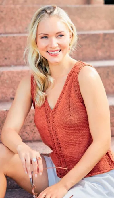 Топ с V-образными вырезами и полосами узора и вертикальные вытачки. Спицы