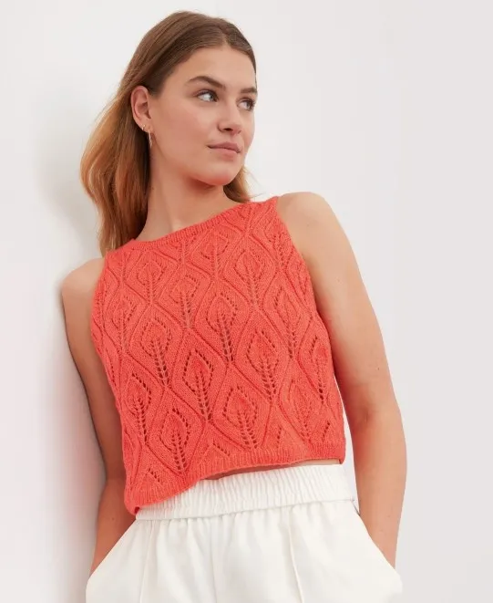 Я бы адаптировала этот топ под весенне-зимний сезон, добавила бы длину, хотя мода диктует длину до талии, и пряжу выбрала бы тонкую (400 м на 100г) и обязательно шерстяную.