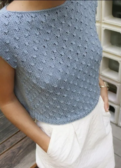 Вяжется топ на одном дыхании и является прекрасным дополнением летнего гардероба.