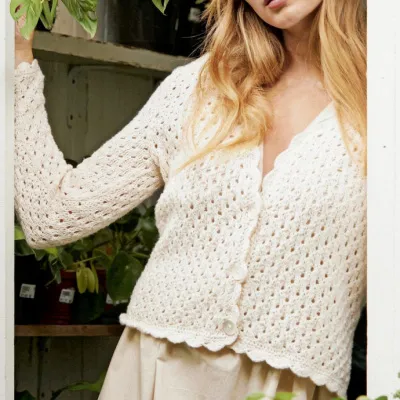 Милая кофточка в дырочку спицами