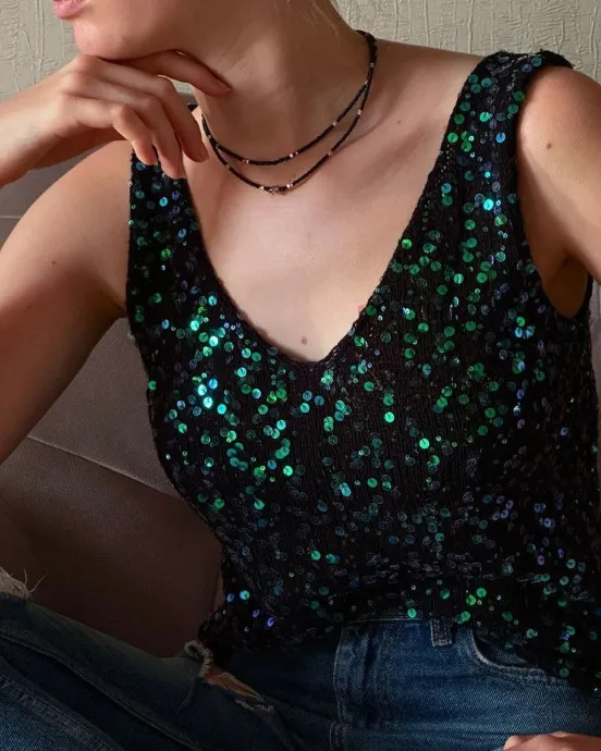 Топ из королевских пайеток на хлопке