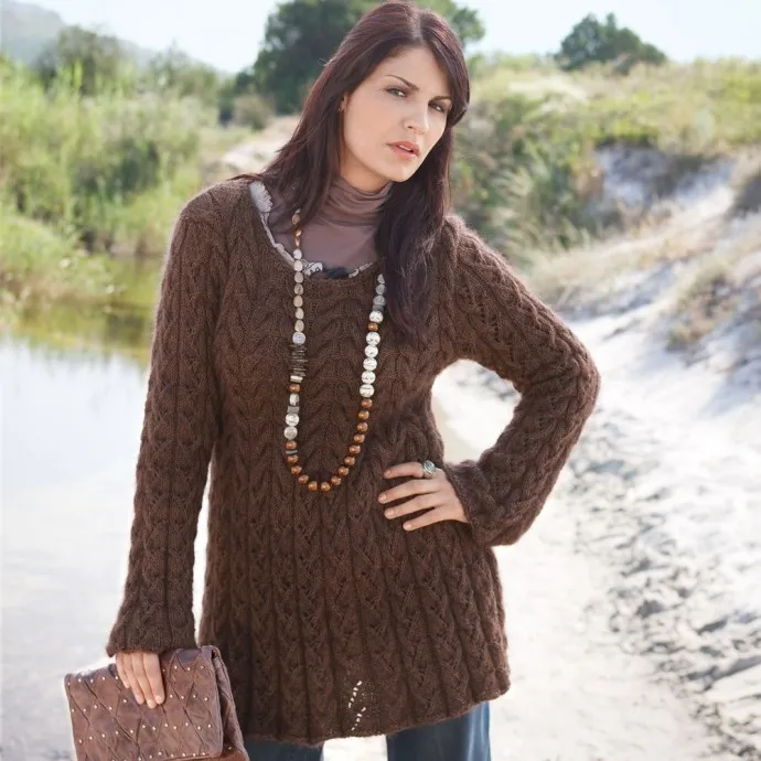 - пряжа Silkhair (70% супер кид мохер, 30% шелк; 210 м/ 25 г) — 200 (225) г коричневй;