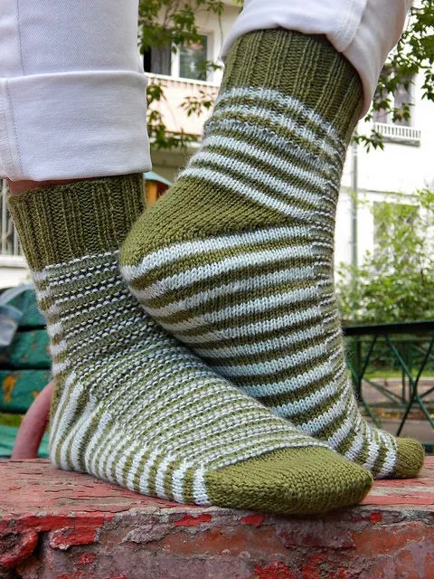 "Гусеница” – полосатые носки от мыска с клином подъема стопы