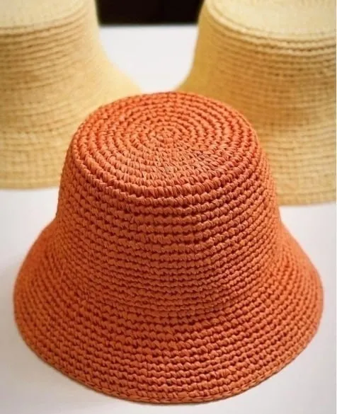Описание рассчитано на вязание средней плотности крючком 2,5 рафия ISPIE. Вяжем по спирали без переходов. Форма тульи трапеция.