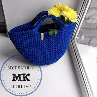 Синяя вязаная сумка-шопер: стиль, практичность и яркий акцент образа