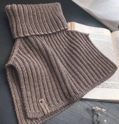 Спицами №4 на леске 40 см наберите 116 п. + 1 п. для объединения в кольцо. Вяжите вкруговую резинкой 2 на 2 на ту длину, которая нравится. На фото для шеи провязано 50 р. или 18 см.