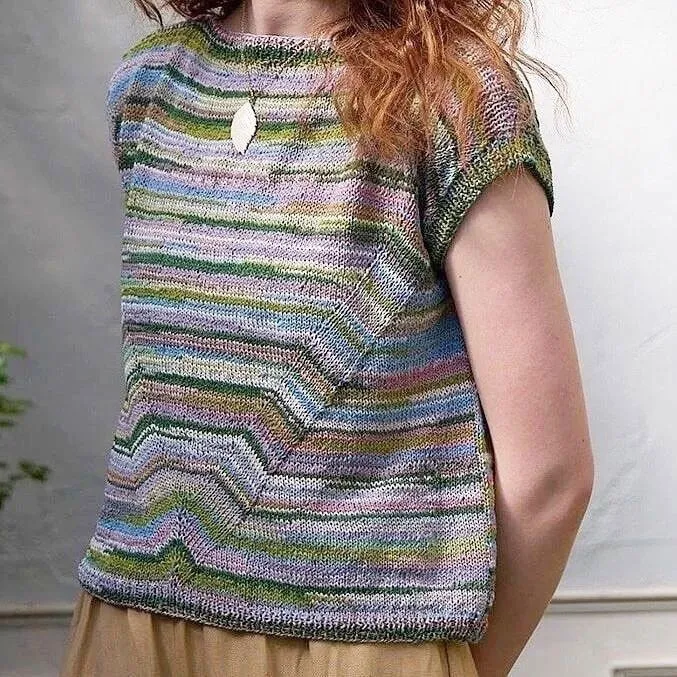Как вязать «ломаные» линии: поставим полоски в угол Простой приём в вязании полос, а как эффектно! Особенно выигрышно такая угловая деталь выглядит на секционной пряже, но и в двухцветном варианте тоже неплохо.
