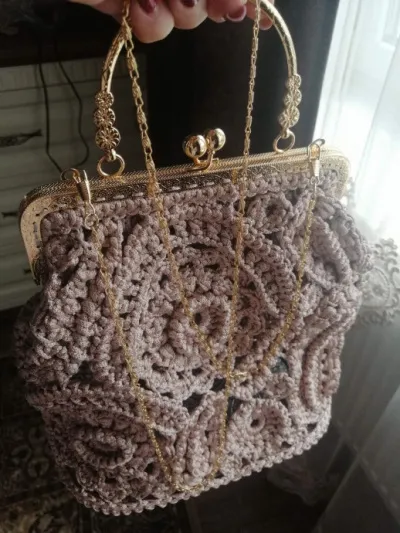 сумочка в технике ирландского кружева на фермуаре