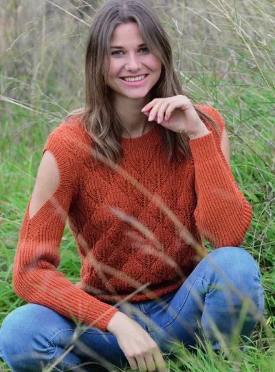 500 (550) ((600)) г пряжи типа LINIE 5 CORAFINO терракотового цвета номер 56 (60% шерсть,40% полиакрил, 175 м/50 г), прямые спицы № 3 и 3,5, а также круговые спицы № 3 длиной 40-50 см.