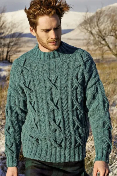 Вам потребуется: 15 (17,18.19, 20, 22. 23) мотков бирюзовой Teal 725 пряжи Felted Tweed Aran (50% мериносовой шерсти, 25% альпака, 25% вискозы, 87 м/ 50 г); спицы № 4 и № 5, круговые спицы № 4, вспомогательная спица.