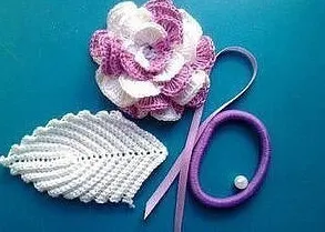 Сделав обвязку, скрутите вязаную ленту в спираль, сформировав цветок,