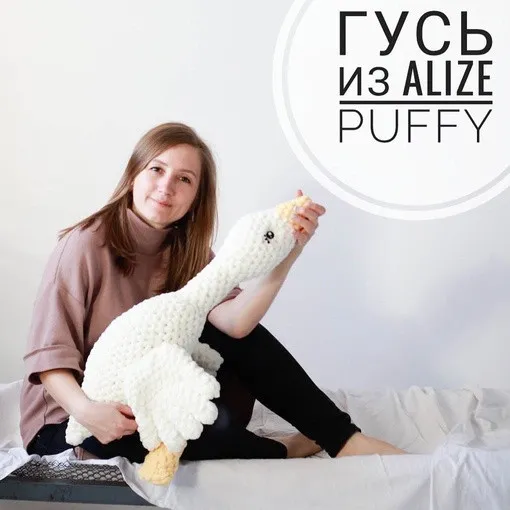 Связан крючком из пушистой и невероятно приятной на ощупь пряжи Alize Puffy — этот гусь покоряет с первого взгляда. Мягкий, как облачко, и при этом стильный — он станет отличным украшением интерьера или уютным другом для ребёнка.