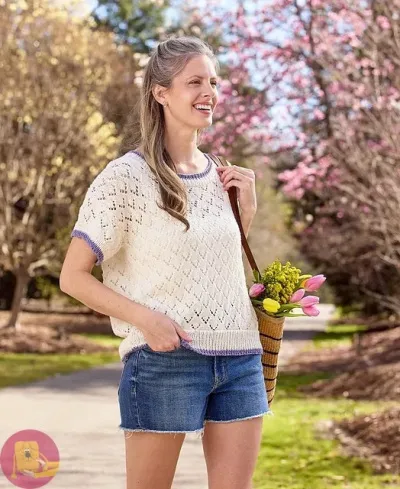 Я выбрала спокойный, природный оттенок — и он прекрасно подчёркивает структуру узора. Эта футболка уже стала любимицей в моём летнем гардеробе. А ещё она — отличный проект для тех, кто хочет попробовать ажур в одежде, но не готов браться за сложные схемы.