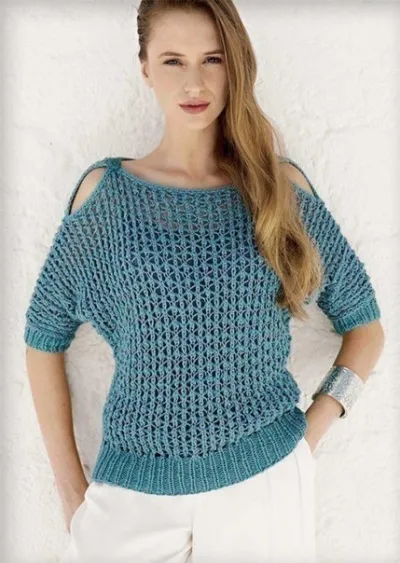 Пуловер ажурный сеточкой свяжите себе для жаркого лета