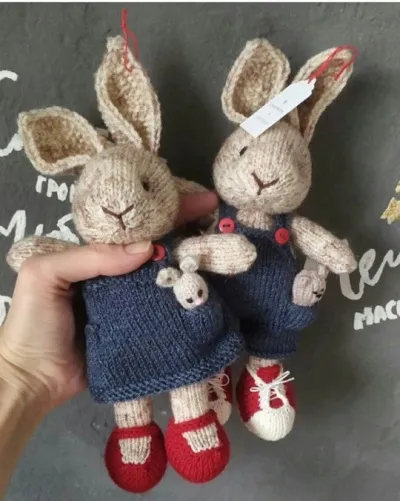 Карман пришить к платью. Платье сшить сзади, одев на кролика