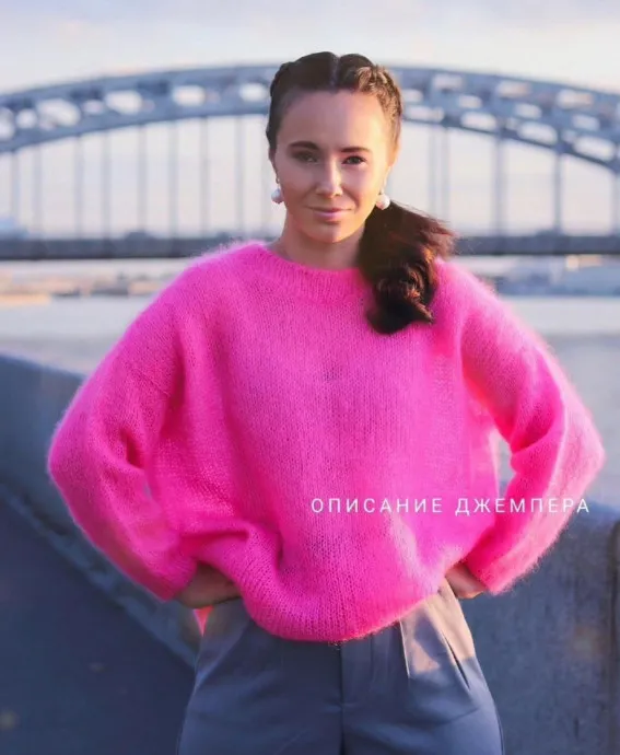 Этот розовый джемпер связан спицами вручную — с любовью, теплом и вниманием к каждой детали. Мягкий, уютный, как тёплое объятие в прохладное утро.