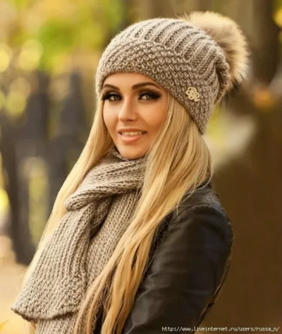 Осенний комплект спицами: шарф и шапка