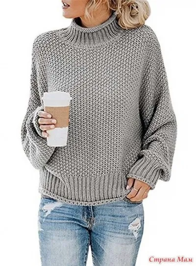 Самый популярный в этом сезоне свитер с высоким воротом, как и положено ему быть, оказался на удивление простым, в нем обычный рисовый узор и все! Благодаря тому, что вещь просторная и объемная, она очень современная.