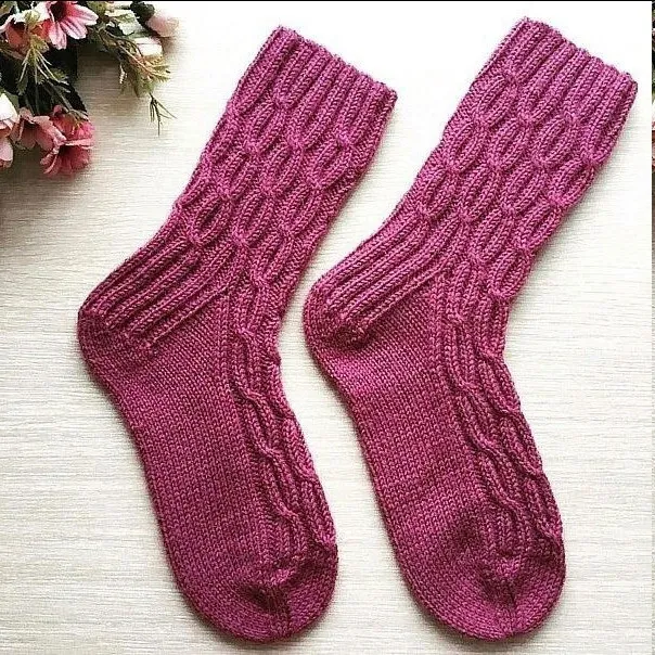 Носки с объемными косами