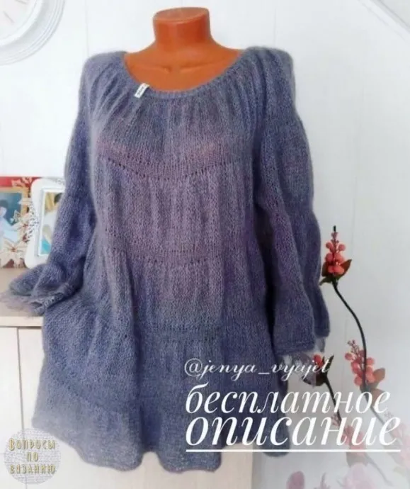 Если вы ищете что-то лёгкое, воздушное и в то же время стильное, обратите внимание на это голубое платье, связанное спицами из мохера. Мягкая, тонкая пряжа и свободный оверсайз силуэт создают идеальное сочетание для создания элегантного и современного образа. Такое платье идеально подойдёт для женщин, которые хотят подчеркнуть свою изящность и при этом чувствовать себя комфортно.