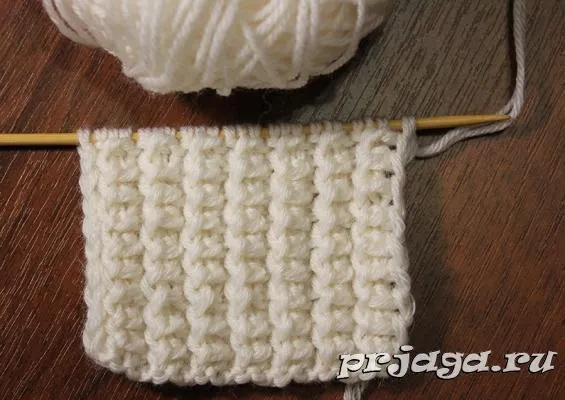 провязать 2 лицевыми, левой спицей накид оттянуть на себя и перетянуть через него 2 лицевые), * кромочная.