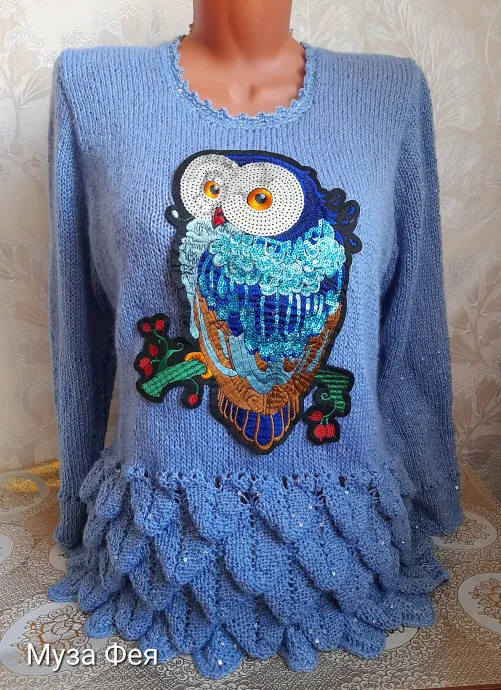 Привет! Связала джемпер "Совушка". Идея и воплощение - мои. Аппликация готовая.