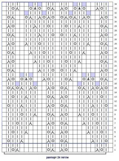 Схема узора с сердечками, вяжем спицами
