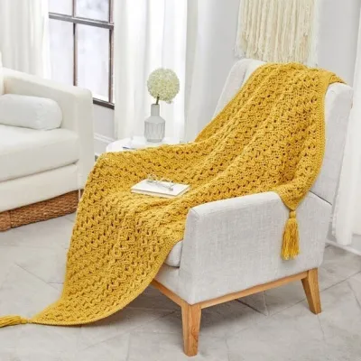 Горчично-жёлтый плед, связанный крючком – это не просто уютная вещь, а настоящий акцент в интерьере. Такой цвет дарит ощущение тепла, уюта и солнечного настроения даже в пасмурный день.