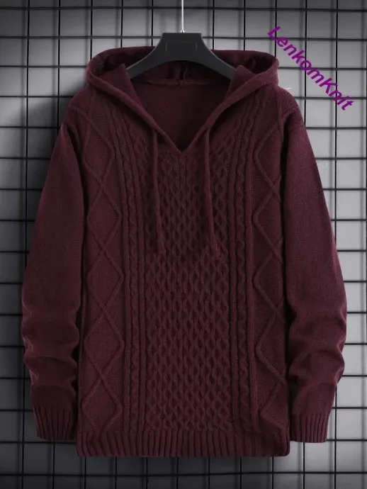 Мужской свитер-толстовка с капюшоном и интересным (но классическим) рельефным узором спереди.