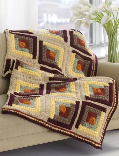 Шикарные пледы, особено понравился из квадратов разных размеров в бежево-кричневых с синим. Могу представить сколько работы