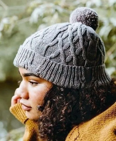 Грандиозное переплетение жгутов украшает и утепляет вязаную шапку для женщин.