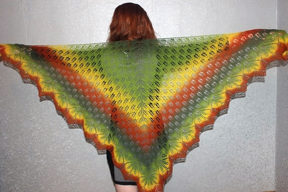 Эта ажурная шаль в форме треугольника покорила сердца вязальщиц по всему миру. Её название переводится с эльфийского как «бабочка» — и действительно, узор напоминает нежные крылья. Лёгкая, воздушная и женственная, шаль Харуни может стать главным акцентом вашего образа.