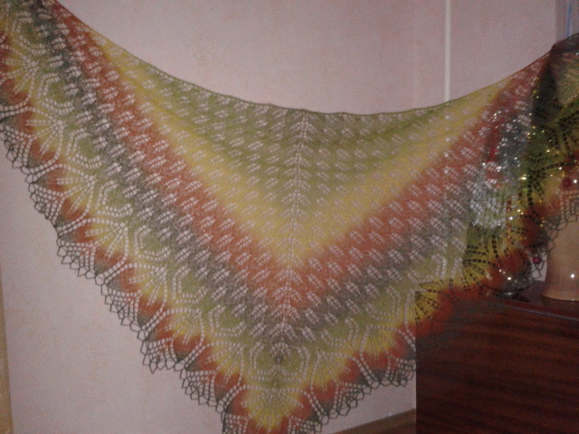 У меня пряжа Кауни 8/1, а она не в мотках, а в пасмах, цвет Fall, длина в 100 г 800м,100% шерсть, Эстония. Пасма у меня была больше 200г и немного осталось.