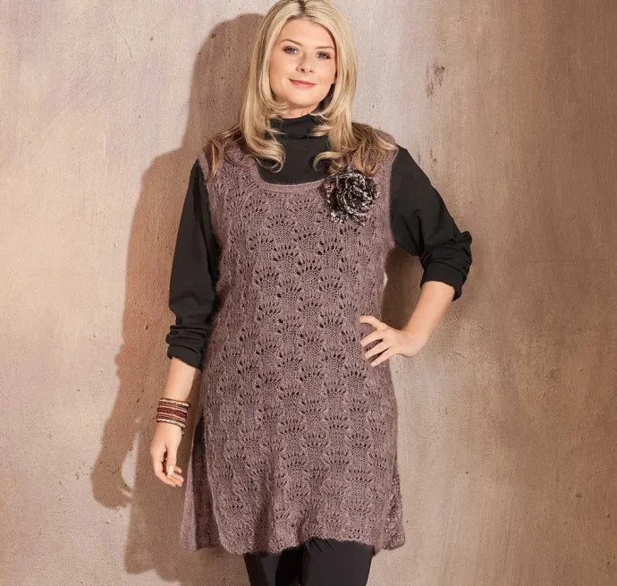 Прямая туника длиной до середины бедра отлично скрывает недостатки фигуры и выглядит весьма привлекательно.