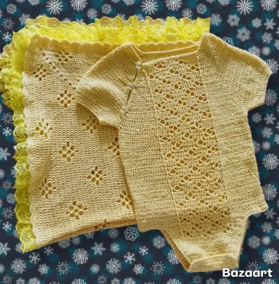 В предыдущем посте был зайка Топтун, который был связан в комплект для новорождённой малышки. К сожалению на малышке показать не могу, только могу сказать, что всё подошло.