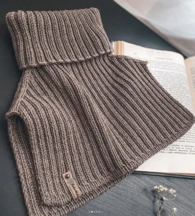 Вяжем по кругу резинкой 2*2 на желаемую высоту, у меня 50 рядов или 18см.