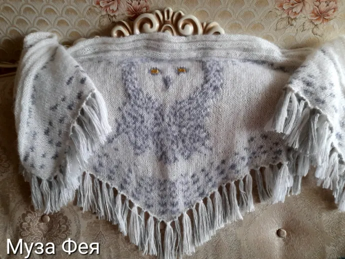 Шаль Сова получилась мягкая, теплая, пушистая, с большими крыльями!