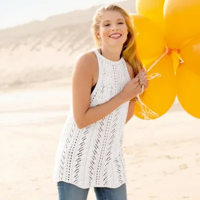 - Пряжа (65% хлопка, 20% полиакрила, 15% вискозы; 105 м/50 г) — 400 (450) г белой;