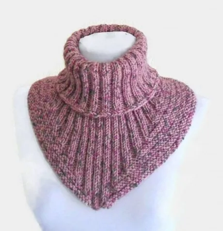Вязать надо снизу, и начинать спицами большого размера, чтоб вокруг шеи ложился не сворачиваясь. Набирала 160 петель. Довязала до ключицы и стала убирать петли в задней части, убрала 40 петель, как раз получилось убрать всю платочную вязку, т.е полностью перейти на резинку. Убавки делала в каждом ряду. Горловину вязала на 120 петлях.