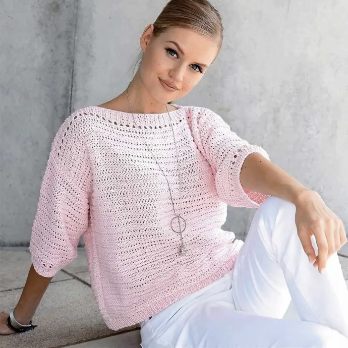 Пряжа (55% хлопка, 45% полиакрила; 140 м/50 г) – 300 (350) 400 г розовой; спицы № 5.