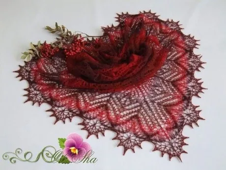 Шаль треугольной формы. Вяжется от середины основания к кайме. Автор Ольга Бочкарева.
