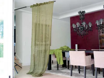 Такую гардину можно выполнить как для окна, так и дл дверного проема или просто для разграничения зон в помещении.